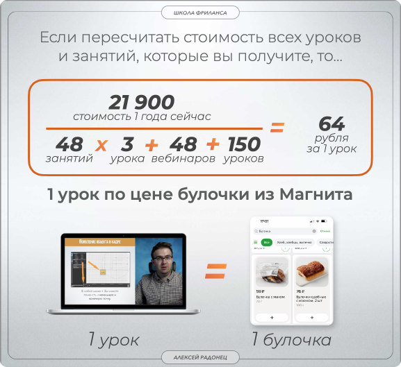 Рассрочка - это возможность учиться уже сейчас, а платить потом. Вы платите ровно ту сумму, сколько стоит обучение. Первый платеж вам нужно сделать только через месяц после оформления рассрочки и обучения в клубе. Оформить рассрочку очень просто. Во время оплаты выберите вариант "рассрочка" в Тинькофф или Сбербанке, заполните короткую анкету и получите одобрение по смс (возможно понадобится выезд курьера для подписания документов). Если, вдруг, с первой попытки вашу заявку не одобрят - не расстраивайтесь, дождитесь звонка нашего менеджера и он подскажет как правильно заполнить анкету и подаст заявку сразу в несколько других банков. Мы поможем добиться одобрения, чтобы вы могли учиться в клубе.